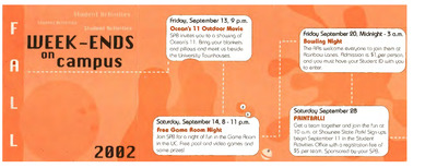 2002, Fall Weekends On Campus Schedule